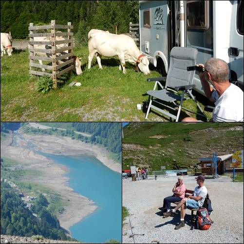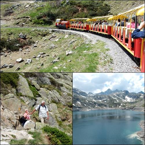De rit ging eerst door een tunnel van 3 honderd meter. Door de tunnel heen was het uitzicht geweldig de spoorbaan ligt tegen de berghelling. Het duurde ongeveer 50 minuten. Daar aangekomen was daar een stationnetje daar hebben we eerst gegeten. Erg is daar een wandelpad naar een stuwmeer. Dat is ongeveer 15 minuten lopen wel omhoog. Fokko en Hilda konden niet zo snel die wilden rustig aan doen. Wij moesten maar vooruit gaan. Boven was er eerst een meertje waar je water omhoog zag borrelen. Waarschijnlijk uit het stuwmeer. Even hoger kon je bij de dam komen daar zijn we even over heen gelopen. Toen we weer terug over de dam waren kwamen we ..