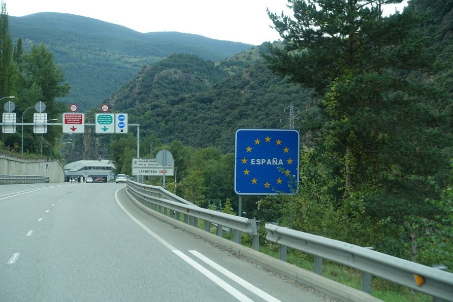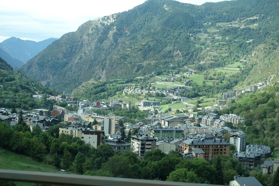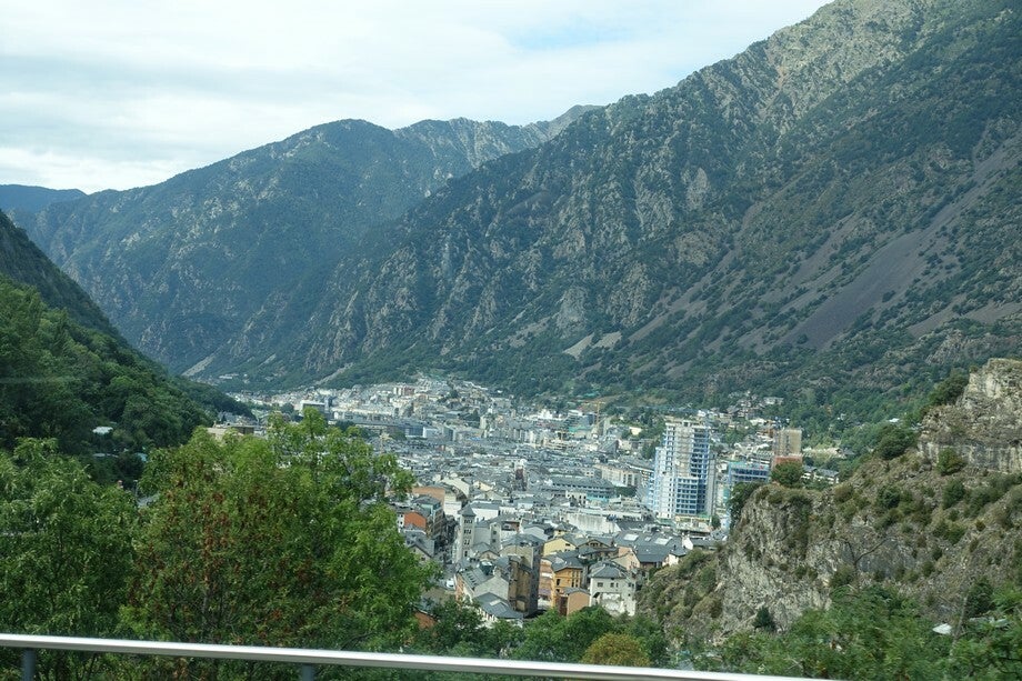 Voorbij de hoofdstad Andorra la Vella, vonden we een parkeerplaats achter een winkelcentrum waar we konden staan om een broodje te eten. Daarna reden we al gauw Andorra uit en Spanje in.