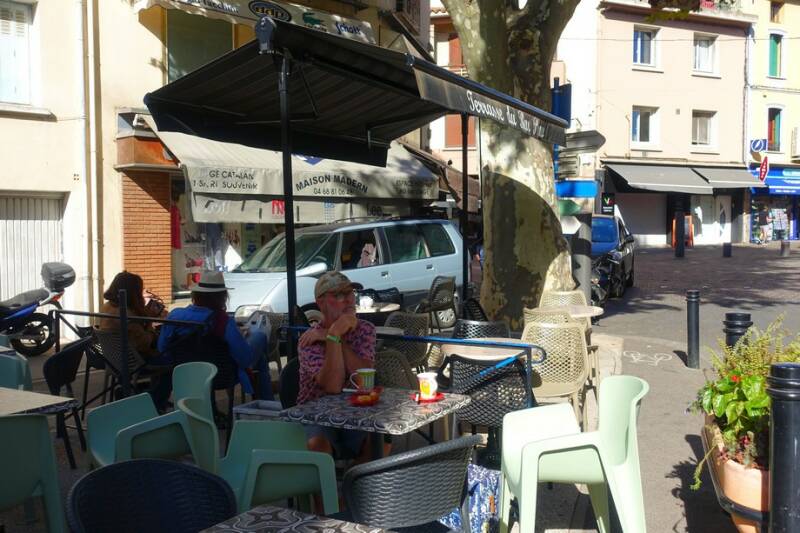 Donderdag hebben we nog een bakje koffie gedaan in Argeles le Ville, dat is eigenlijk het oude Argeles, de camping is in Argeles Plage.