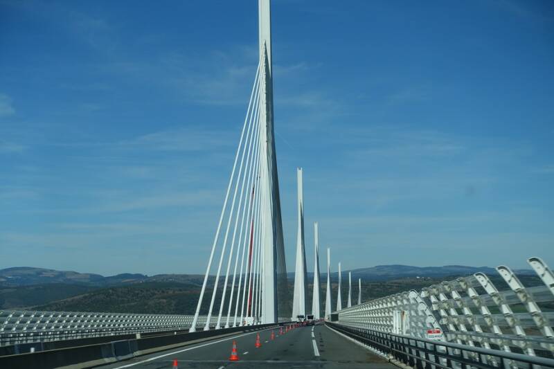 Er was weinig vrachtverkeer op de weg en we konden lekker doorrijden. Millau hebben we dit keer vanaf de grote tolbrug zien liggen. Op de heenweg hebben we daar nog gestaan maar nu is er niets meer open.