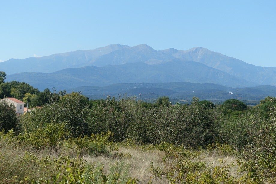 Gisteren was er niet zoveel wind dus tijd voor een wat langere fietstocht. Langs de druivenvelden en wat hoger gelegen dorpen met mooi zicht op de vallei zijn we richting Le Boulou gegaan. Dat ligt vlakbij de grote weg naar Spanje aan het begin van de vallei. Vlak voor Le Boulou hadden we een mooi panorama zicht op de Pyreneeën.