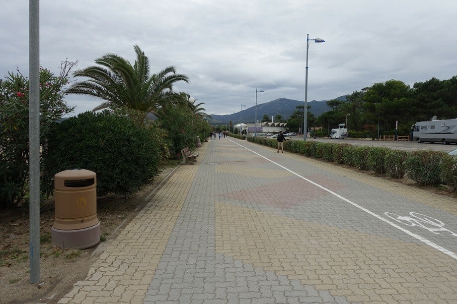 Na de middag was het droog dus tijd om een rondje dorp te doen. Wat is het hier rustig vergeleken met 4 weken geleden! Veel appartementen staan leeg, op de boulevard is het stil net als op het strand. Als je goed kijkt kun je vanaf het strand wel de camping zien waar we gestaan hebben.