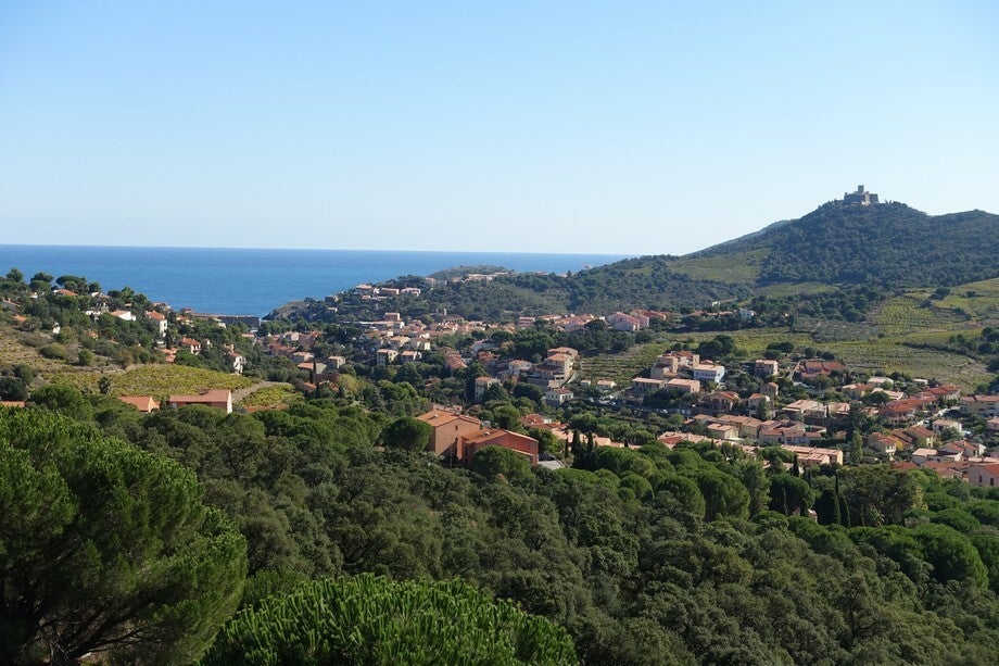 Bij de haven hebben we koffie gedronken en daarna was het nog maar een stukje over de kustweg naar Collioure. Voor het dorp zijn we nog even gestopt, mooi uitzicht.