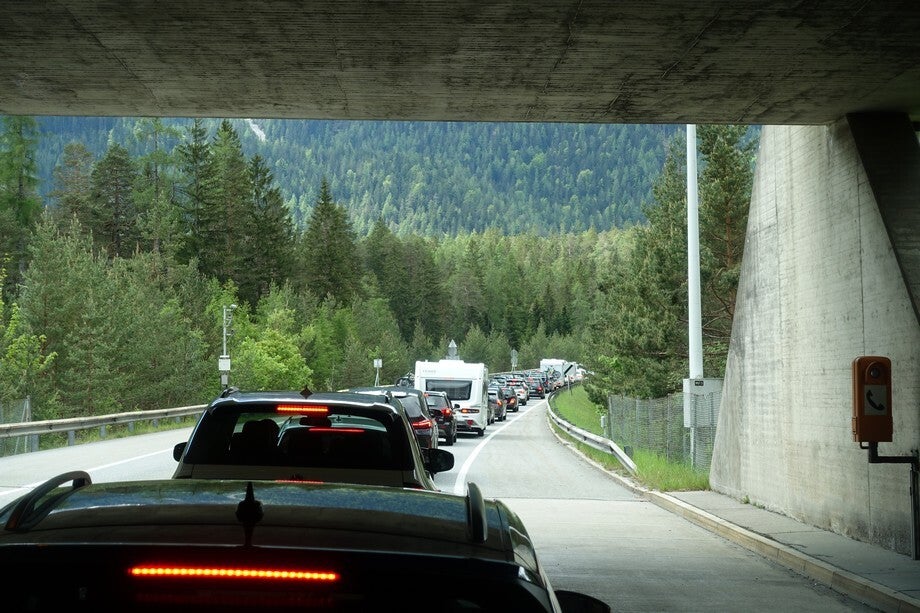 Om negen uur reden we weer. Het eerste stukje gingen we binnendoor omdat we dat mooi vinden. Dit hadden we goed gedaan want voor de grenstunnel met Oostenrijk stond al een hele file op de autobaan. Als je binnendoor gaat kom je vlak voor de tunnel op de grote weg dus dat scheelde een stuk file!