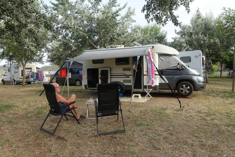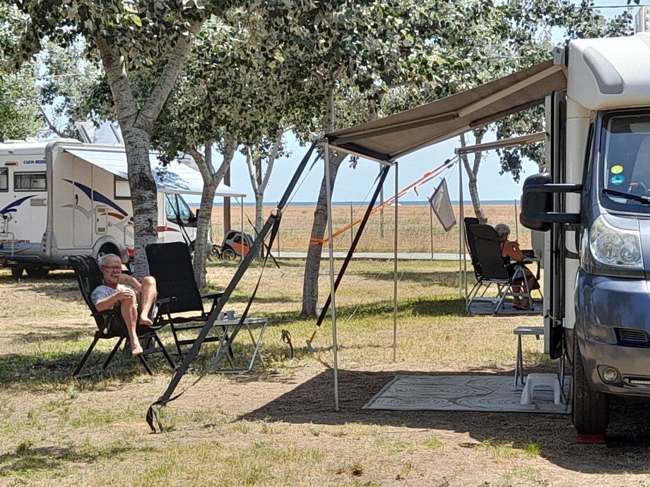 De camper staat wel een deel van de dag in de zon maar er zijn wel genoeg bomen om in de schaduw te kunnen zitten.