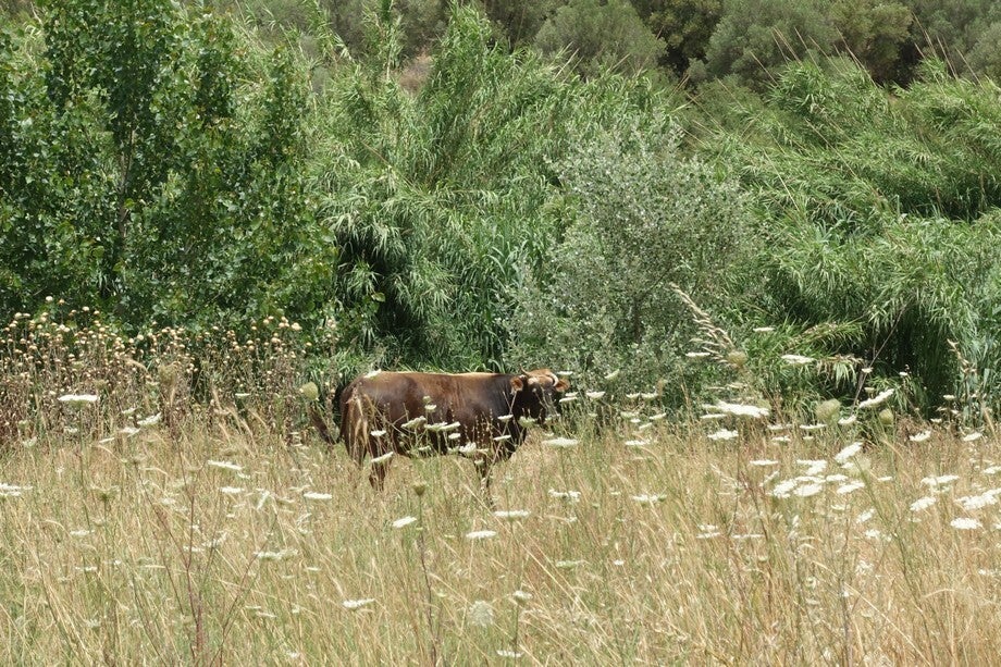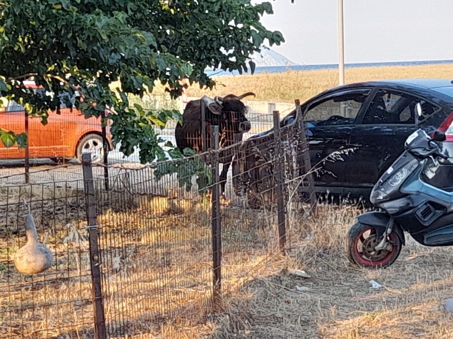 We hadden geen zin om te koken dus zijn we naar de Taverne naast de camping geweest om moussaka te eten. Lekker hoor! Tijdens het eten kwam er een koe langs. Die liep lekker hier en daar aan de bomen te knabbelen. Schijnt vaker te gebeuren.
