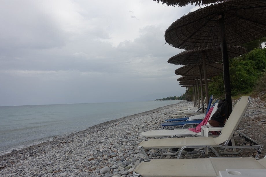 We hebben onze reisplannen maar een beetje aangepast aan de temperaturen. Deze week wilden we eigenlijk naar de Meteorakloosters maar het wordt daar 36 tot 38 graden dus dat doen we maar niet. Zo aan de kust is het ook lekker!