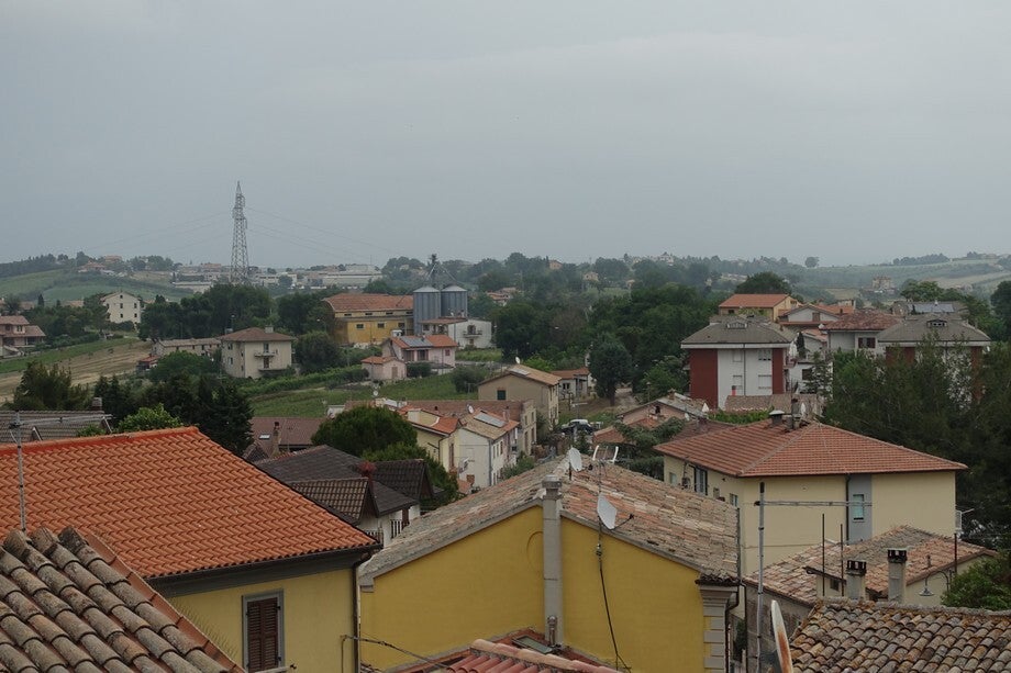 Na 30 kilometer rijden waren we in Morro d’Alba waar we op de heenreis ook hebben gestaan. Gauw de sleutel van de slagboom gehaald bij de bar die we nu weten te vinden. Toen was het tijd voor een heerlijke pizza met een koud biertje. Daarna nog even naar de dorpswinkel geweest, die was nog net open. Op aanraden van de mevrouw in de winkel nog een lekker ijsje gehaald bij de trattoria even verderop.