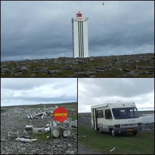 S`middags zijn we door gereden naar Hraunhofnartangi waar we zijn gaan lopen naar de vuurtoren, daar is het noordelijkste puntje van IJsland en ben je z`n 3 km van de poolcirkel. We staan iets terug met de camper we konden daar niet staan.
