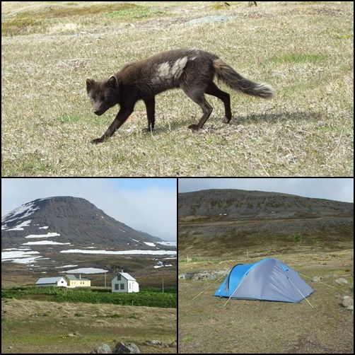 In een slaapzak met een fleecezak er in is wat anders dan een dekbed. Je voelt je een beetje claustrofobisch in dat ding. Om vier uur werd ik wakker het was wat harder beginnen te waaien de tent klapperde wat. Om kwart voor acht opgestaan gegeten broodjes gesmeerd koffie gezet voor onderweg. En toen kwam het vosje weer langs we hebben hem nu op de film en foto staan.