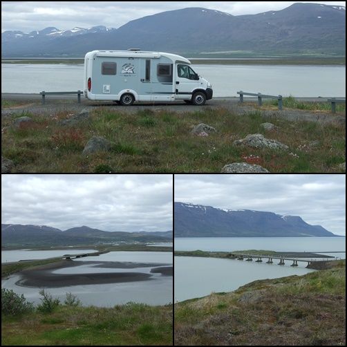 Vanmorgen om negen uur vertrokken eerst legen en vullen en daarna richting Muvatn. We hebben een paar ommetjes gedaan wat erg mooi was. Met de koffie stonden we vlak bij het plaatsje Saudarkrokur over de brug op een P. Daar is ook een plaatsje om te overnachten als het niet hard waait.