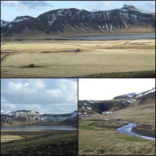 Daar vandaan naar Vik vlak voor Vik moest een weggetje naar links zijn naar een meertje daar wou Wil even kijken voor een volgende keer om te overnachten het was er wel mooi maar niet om te overnachten met de camper. In Vik hebben we getankt en koffie gedronken.
