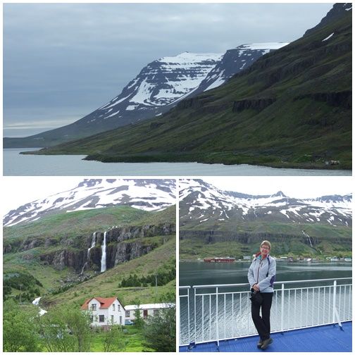 Vanmorgen,donderdag 20 juni, zijn we aangekomen in Seydisfjordur. De zee was erg ruig en we hebben letterlijk de hele nacht liggen rollen in bed. Gelukkig hadden we anti-zeeziektepillen en een wijntje zodat we niet ziek werden.