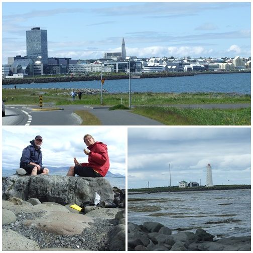 Vanmorgen eerst de weblog aangepast en de was gedaan het tentje op gezet. En na de koffie zijn we gaan fietsen naar de vuurtoren van Reykjavik en hebben het badje gevonden Kvika een heel klein badje vlak aan de zee.