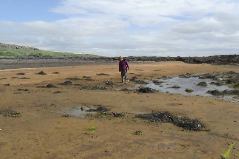 We hadden het hele “strand” voor onszelf. Het was weer laag water maar er zijn hier geen schelpen te vinden, alleen hele kleine slakkenhuisjes.