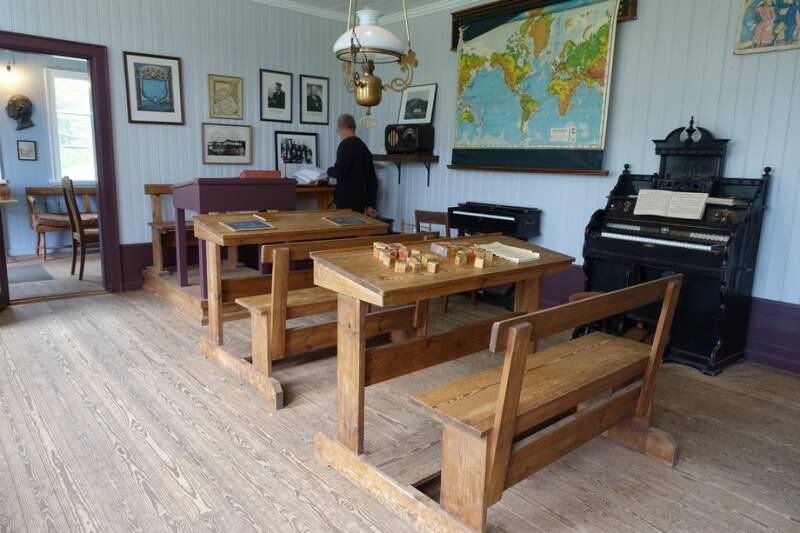 Binnen is een gedeelte met curiosa, handwerken van zowel de mannen als de vrouwen want in de donkere winters was daar veel tijd voor, gereedschappen, visserstuig en nog veel meer.