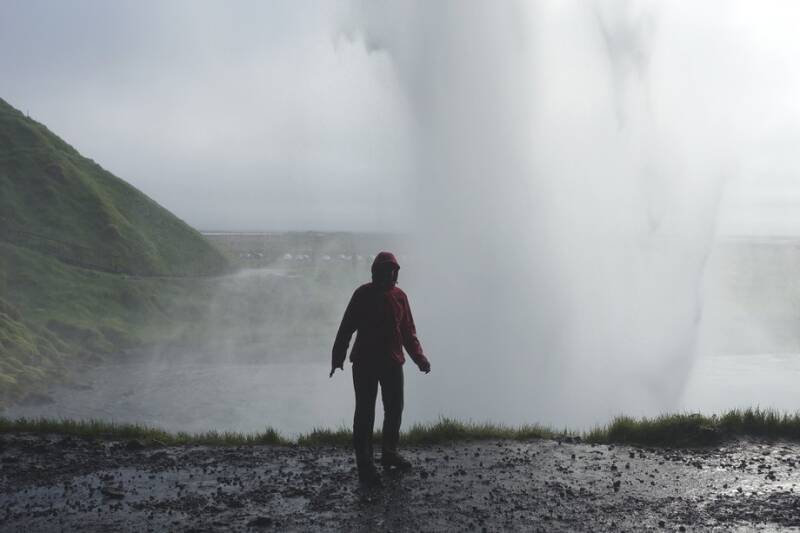 Vanavond zijn we naar de waterval gegaan. Die is heel bijzonder want je kunt er achterlangs lopen. Regenjas aan, want het stuift en sputtert nogal! Er is veel water dit keer en als je er achter staat is dit indrukwekkend om naar beneden te zien komen.