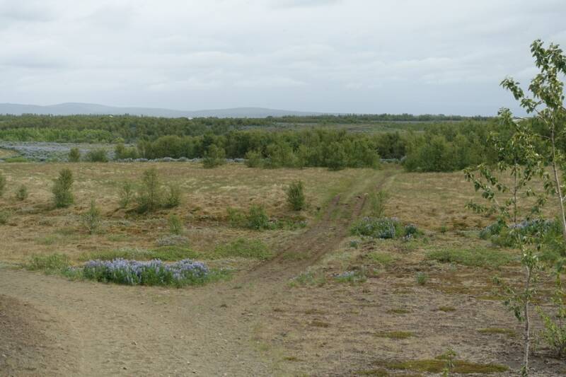 De camping ligt vlakbij een paardenrenbaan. Hier werd vanmorgen druk geoefend. De meeste IJslandse paarden kennen behalve stap, draf en galop nog twee gangen. De telgang, hierbij beweegt het paard het rechterbenenpaar tegelijkertijd en het linkerbenenpaar tegelijkertijd, terwijl de voorbenen net iets later worden neergezet dan de achterbenen. Dit kunnen alleen de allerbeste paarden en ruiters. Dan is er nog de tölt, de benen worden afzonderlijk met gelijke tussenpozen neergezet, linksachter, linksvoor, rechtsachter,rechtsvoor. Dit kan in hoog tempo en heeft als voordeel dat de ruiter niet uit het zadel wordt gegooid. Dit is een heel bijzonder gezicht.