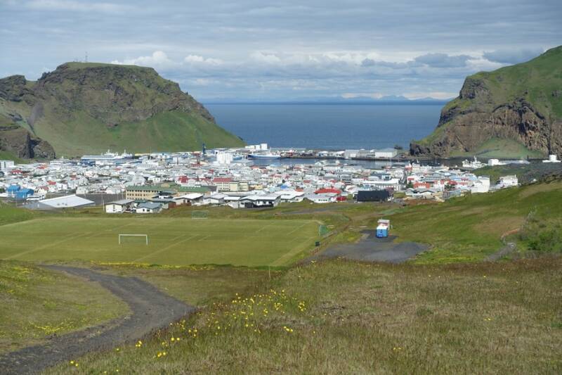 Nu staan we op Heimaey, het grootste en enigste bewoonde eiland van de Westmaneilanden.