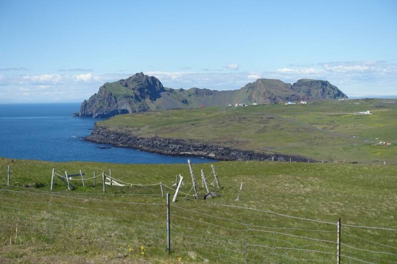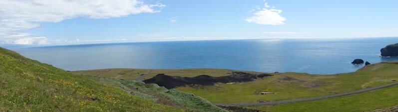 Daarna ging het helemaal naar de zuidpunt. Dit was ooit een apart eiland maar is vergroeid met dit deel. Hier is een grote puffinkolonie maar overdag zijn ze op zee om vis te vangen. De uitzichten waren ook hier erg mooi. De Eyjafjallajökull, een gletsjer op het vaste land, was goed te zien.