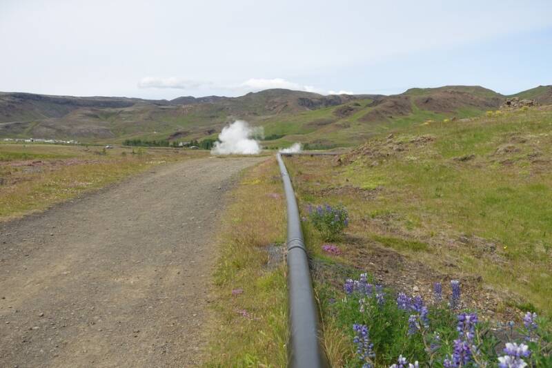 Onder andere in de grote opslagtanks van het Perlan en nog enkele andere opslagplaatsen kan het dan verder afkoelen tot de juiste temperatuur. Vanmorgen hoorden we ook dat het badje bij Nauthalsvik op het strand wordt gevuld met water uit de tanks van het Perlan. ’s Winters hebben de straten van het centrum vloerverwarming, hier lopen ook buizen met warm water. De zwembaden van de stad krijgen ook warm water van de centrale.