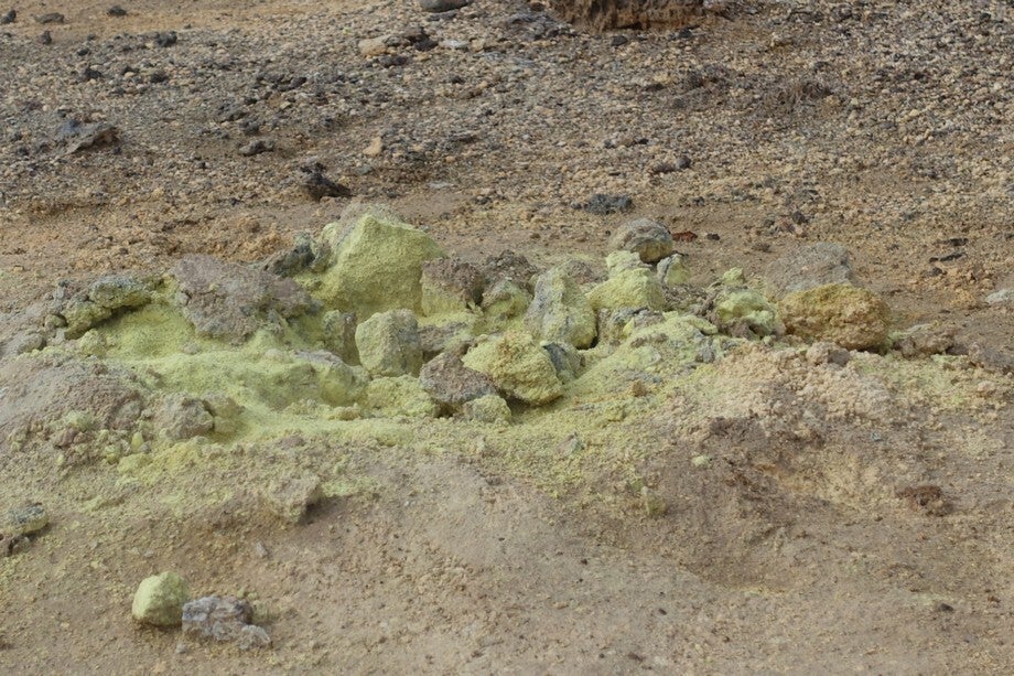 Fijn dat het vandaag wel ging want het was erg mooi. Op de berg komt steeds meer geothermische activiteit. Het stoomde overal en de kleuren zijn erg mooi. We zijn aan de wegkant door de prut omhoog geglibberd, aan de andere kant naar beneden was goed te doen omdat de grond daar iets harder is. Daar is ook mooi zicht op de bergen en kraters in de verte.