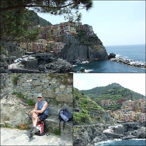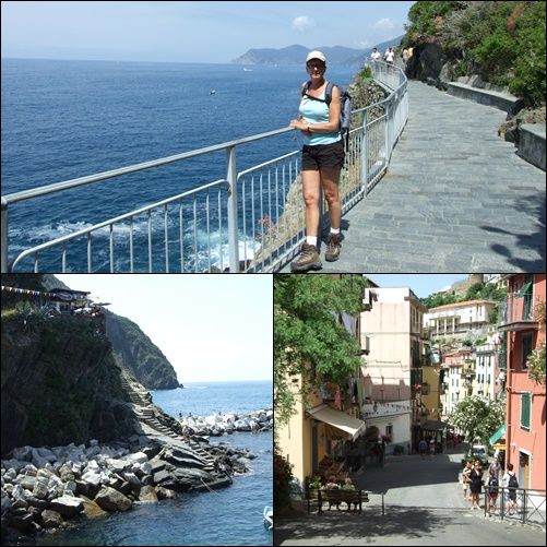 Daar eerst koffie gedronken het dorpje bekeken foto`s gemaakt. Daarna hebben we het wandelpad op gezocht. Eerst ging het wel maar hoe verder we kwamen werd het pad al moeilijker en smaller. We hebben er twee uur over gedaan maar uit eindelijk kwamen we in het dorpje Monterosso we zijn daar naar het strand gegaan en daar ongeveer drie kwartier gezeten.