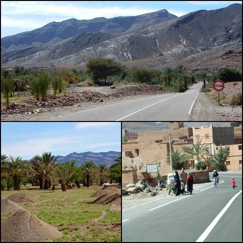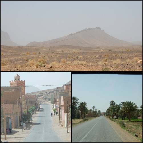 Het eerste stuk naar Zagora ging goed. Mooie nieuwe weg met goed asfalt en prachtige uitzichten op de vele oases.