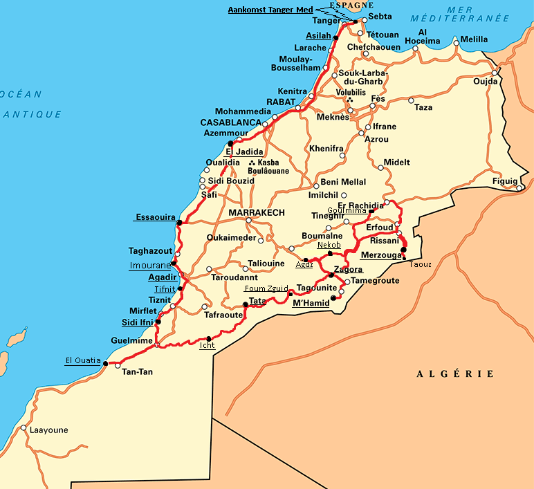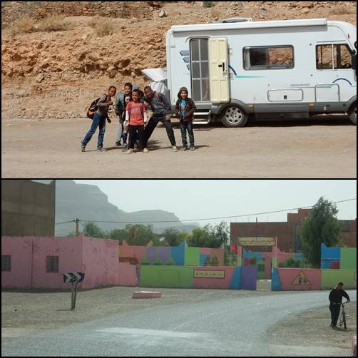 Halverwege in Alnif zijn we even blijven staan om een broodje te eten. Nu wil het toeval dat er altijd wel een school uitgaat als wij ergens staan. Dus nu ook! Een groepje nieuwsgierige jongetjes kwam even kijken bij die vreemde mensen. Dan wordt er ook wel een beetje geschooid om snoep en pennen. We geven niets meer en dan druipen ze ook wel weer af. Ze zijn niet zo brutaal meer als een paar jaar geleden. De koning heeft ook gezegd dat er niet meer gebedeld mag worden en dat lijkt te werken.