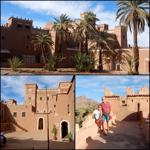 Om vier uur zijn we met een groep mee geweest de kasbah in. Het was alleen jammer dat het een Franse groep was, we verstonden er niet veel van. We zijn toch maar meegegaan om te kijken en het was wel indrukwekkend om dat eens van binnen te zien. Zo’n bouwwerk zit heel ingewikkeld in elkaar. Allemaal binnenplaatsen, gangen, trappen en kamertjes. Ze zijn al een aantal jaren bezig om het geheel te renoveren maar dat is nog lang niet klaar. Van bovenaf was een prachtig uitzicht over de oase en de bergen en kon je ook goed zien dat er nog een groot gedeelte niet klaar is.