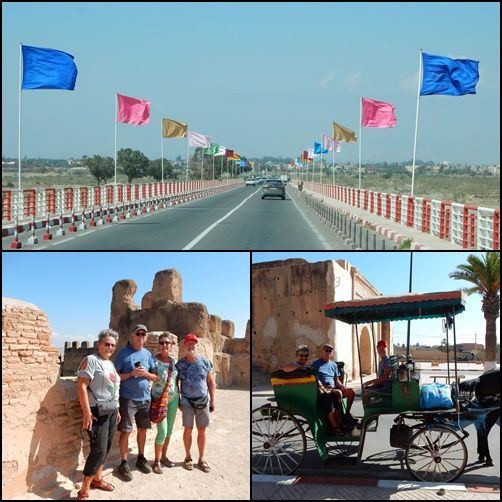 Na de brug met de feestelijke vlaggen kwamen we in Taroudant en we hebben een plekje gevonden bij een muur naast een hotel.