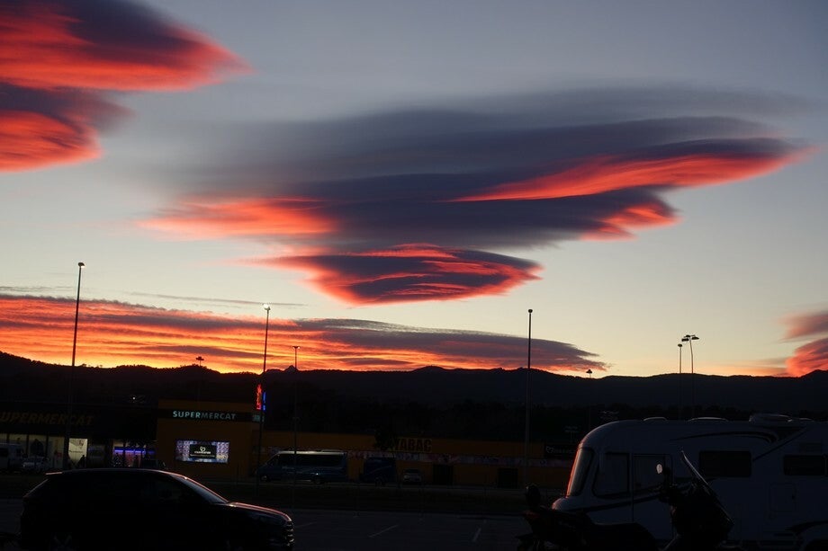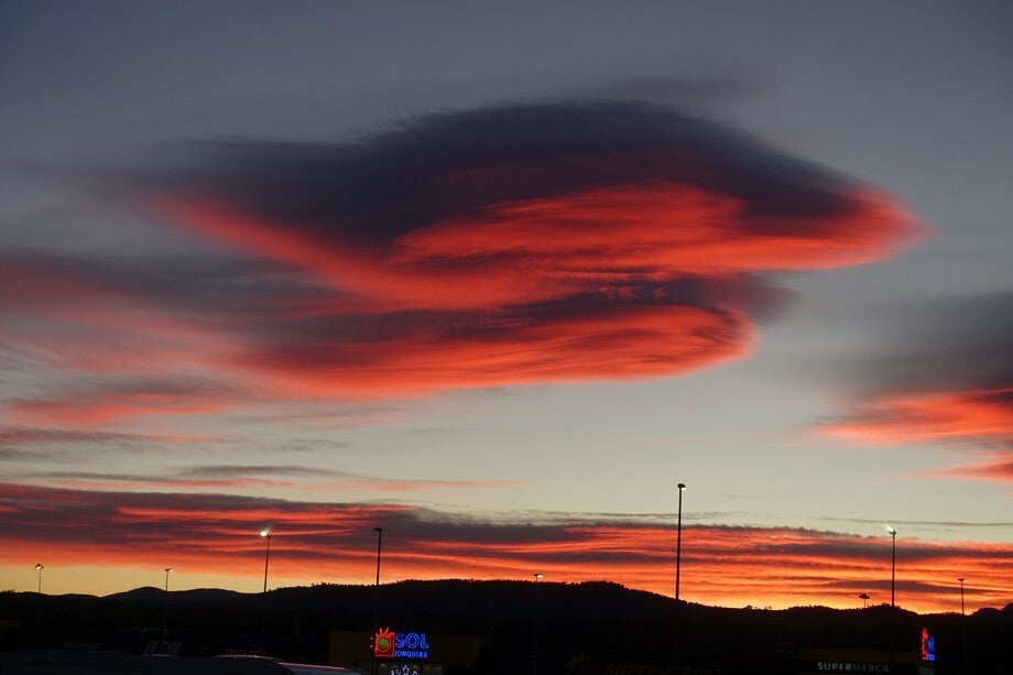 Tijdens de zonsondergang waren er een paar mooie cumuluswolken te zien.