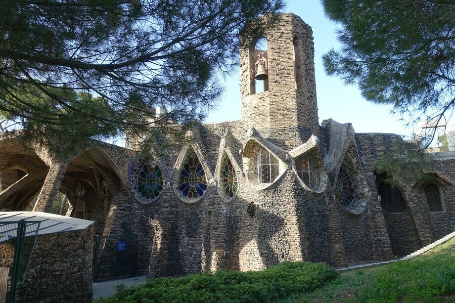 Hier vlakbij ligt La Colonia de Guell, dit is net zoiets als Batadorp in Gelderland. In 1890 heeft meneer Guell hier een textielfabriek gebouwd en voor de arbeiders een woonwijkje met rijtjes arbeidershuisjes. Er was ook een school, een kerk, een theater en een kasteeltje waar waarschijnlijk Guell zelf woonde. In het parkje staat ook nog een kerkje ontworpen door Gaudi. Hierin bevind zich ook de tombe van Gaudi.