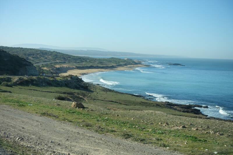 De rit was maar 150 km dus we hadden geen haast en besloten om via de kustweg te gaan. De route was mooi, af en toe langs zee en dan weer door groene heuvels en beboste duinen. Het wegdek was echter heel slecht! Vol gaten en kuilen en ook niet al te breed, de zijkanten hier en daar een beetje rafelig. Rustig aan dus maar, de camper moet nog een poosje mee.