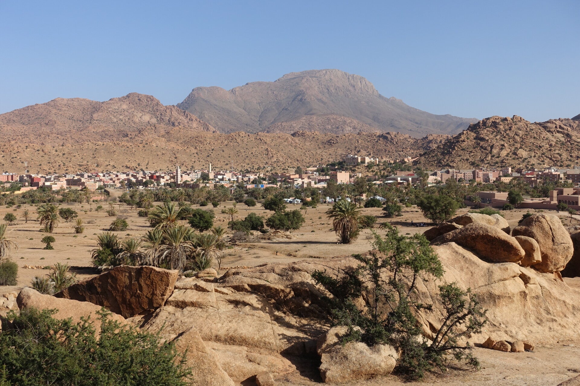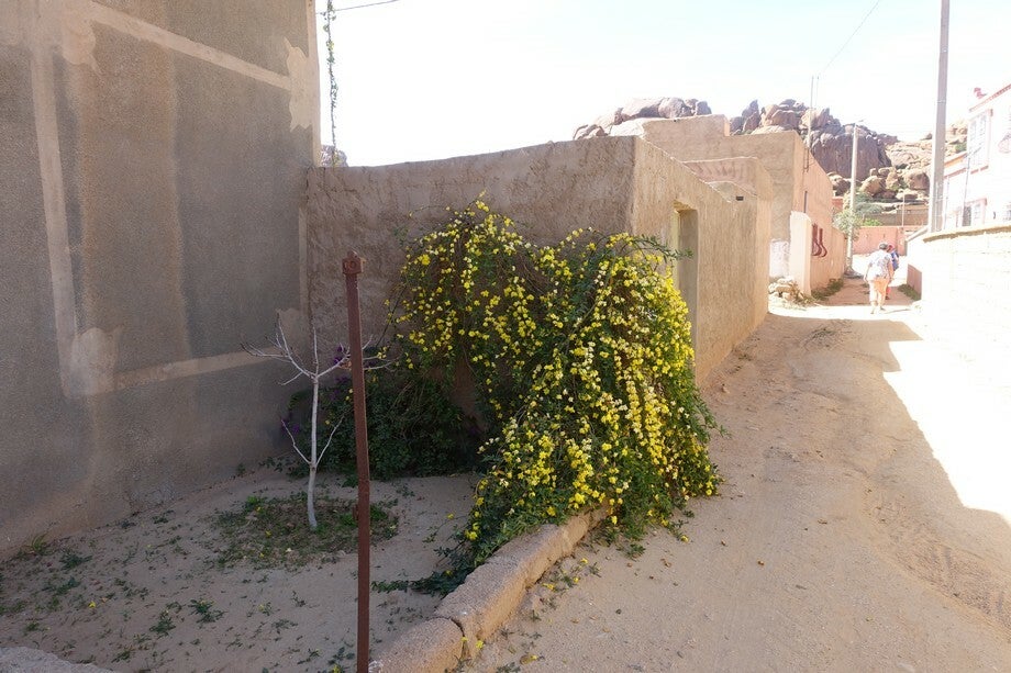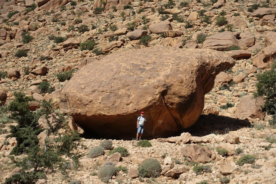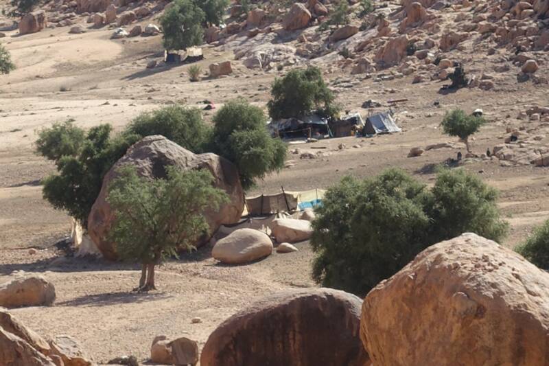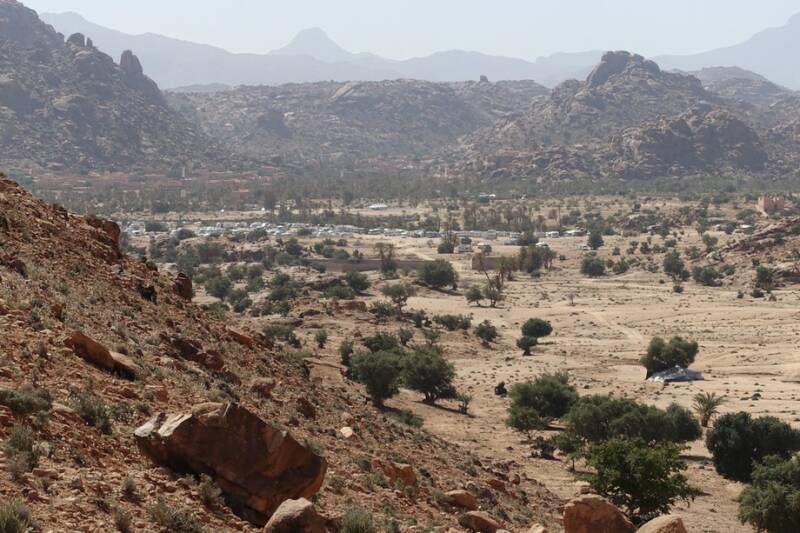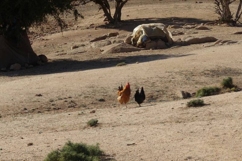 Na de koffie zijn we aan de wandel gegaan. Achter in het dal kun je over een soort pasje omhoog lopen, als je boven bent moet je nog een klein eindje door en dan kun je mooi in het amelndal kijken. Ook op dit pad liggen grote rotsen en er groeien grote bolvormige cactussen. Langs het wandelpad naar het pasje staan een paar tenten waar mensen in wonen die geiten houden en kippen. Er staan ook bijenkorven.