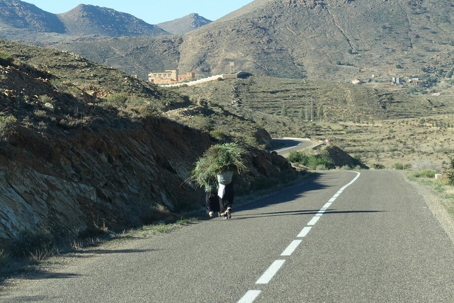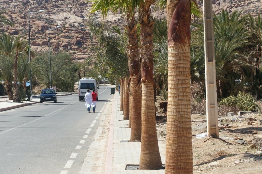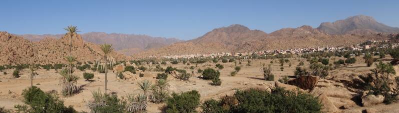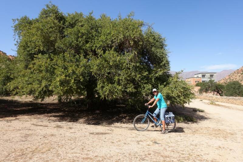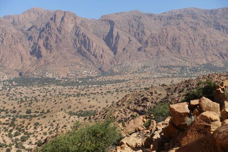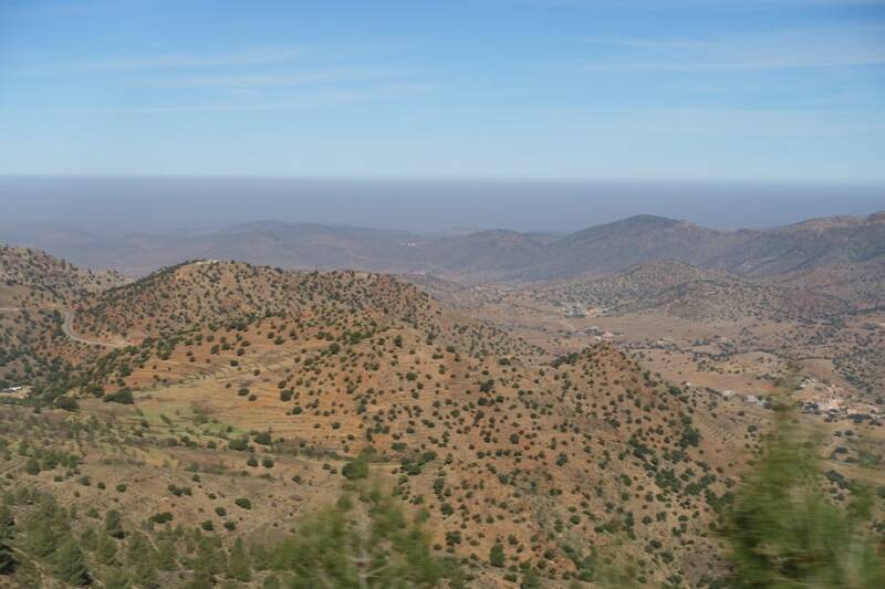 Eerst een prachtige rit door de bergen richting Tiznit. Veel omhoog en naar beneden en bochten dus het ging niet snel maar dan kun je ook wat zien.