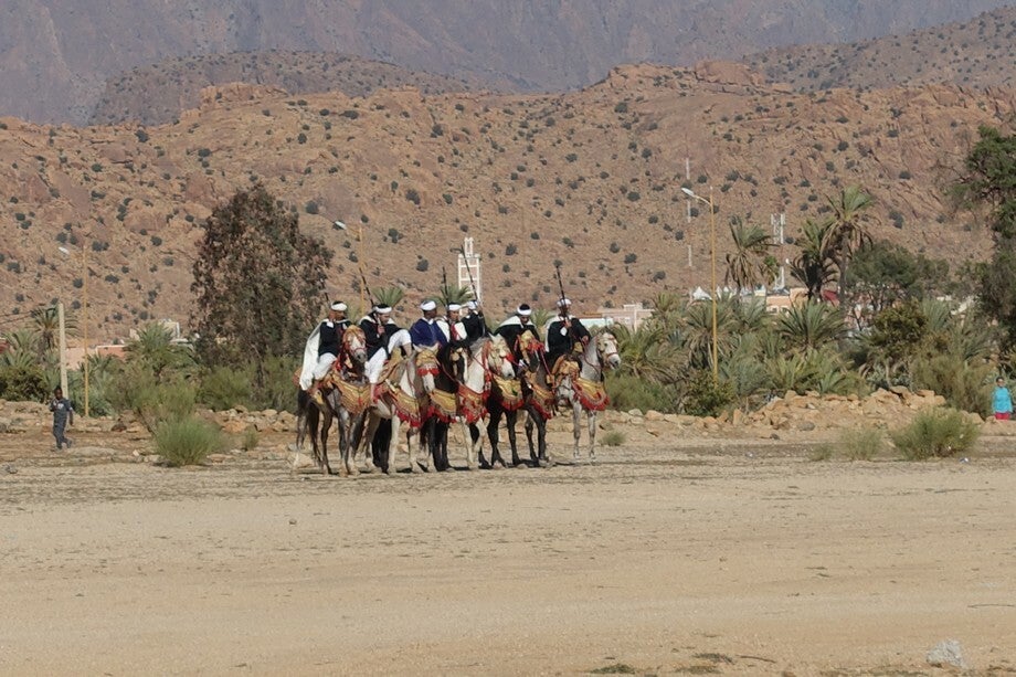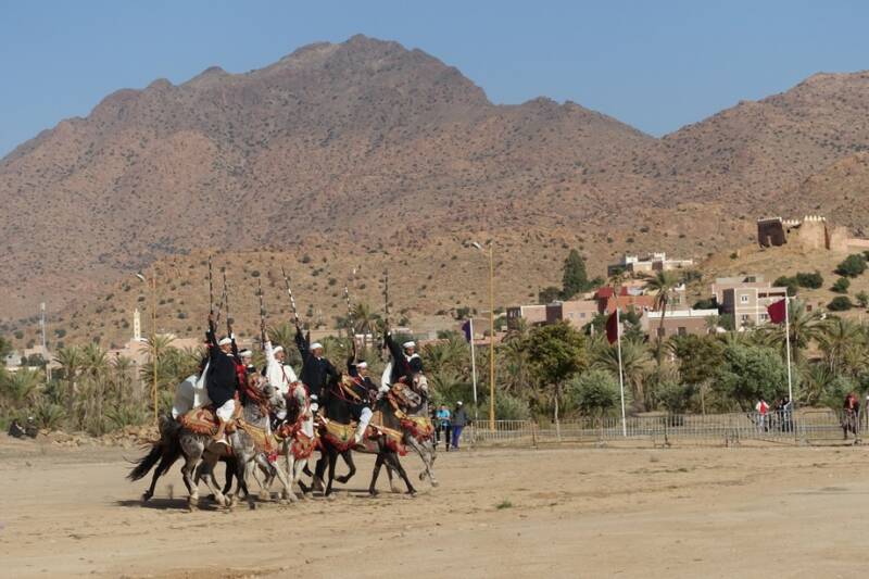 Vanmiddag om vier uur, werd dus kwart over vijf, werd het amandelfestival geopend met het Spectacle de Fantasia. Het leek op een soort demonstratie van hoe men vroeger ten strijde trok. De geweren moesten met de hand met kruit gevuld worden, maar ze deden het nog wel!