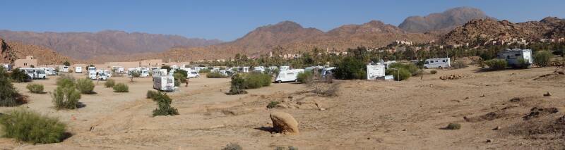 Volgens de guardian staan er nu ruim 200 campers. Donderdag begint het amandel-festival dus het zal nog wel wat drukker worden. Er is nog plaats genoeg. Misschien blijven we ook nog wel even.