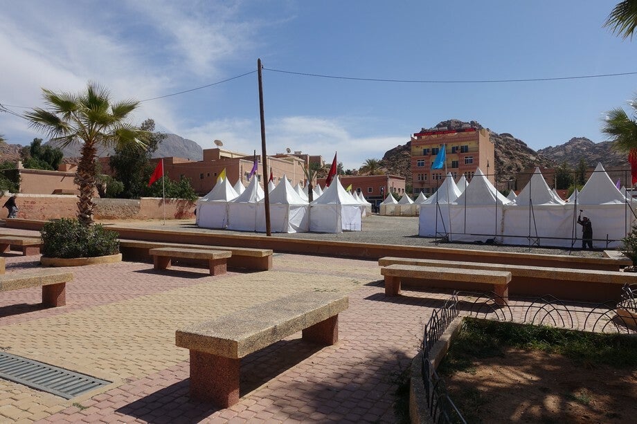In Tafraoute zijn de voorbereidingen voor het amandelfestival in volle gang.