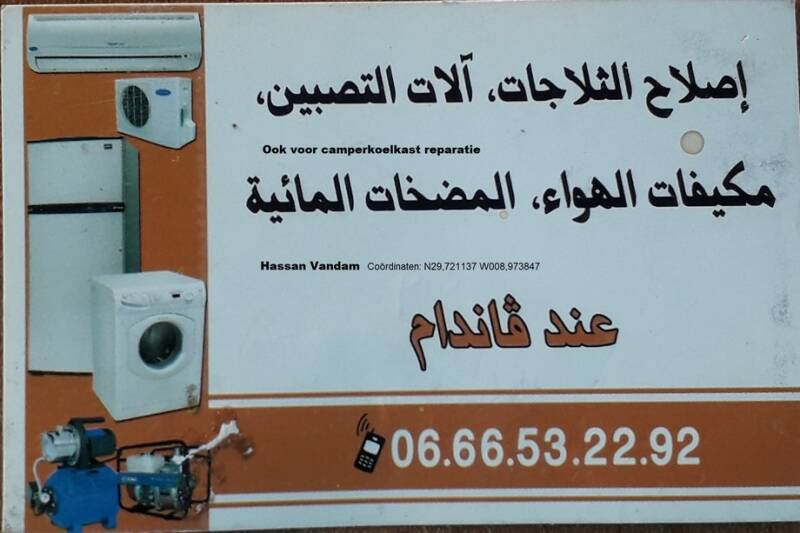 Om een uur of half drie waren we bij Trigano, het bedrijfje waar we mee gemaild hadden. Het was gelukkig makkelijk te vinden,Agadir is toch wel een hele grote stad. Het is eigenlijk een kleine werkplaats met veel onderdelen, zowel nieuwe als gebruikte. Het zag er rommelig uit maar dat is hier wel vaker. De persoon waar we mee gemaild hebben was er niet en de aanwezige medewerker kon het juiste onderdeel niet vinden. Na een telefoontje kwam de mede-eigenaar en die verzekerde ons dat het gevonden onderdeel wel het juiste was. Het artikelnummer klopte helemaal niet en een ander nummer was ook niet helemaal hetzelfde. Toen vroegen we naar de prijs en die was 500 dirham hoger als in de mail van deze week. Dat lieten we zien en toen kwam hij met een vreemde berekening op 2300 dirham i.p.v. 1800. Dit vonden we niet correct en dat hebben we ook gezegd en toen zijn we weggelopen. De persoon waar we mee gemaild hebben was er niet, dit was zijn compagnon en die wou er blijkbaar een slaatje uitslaan. Gelukkig doet de koelkast het nog steeds goed en we hopen dat hij het volhoudt tot we thuis zijn.
