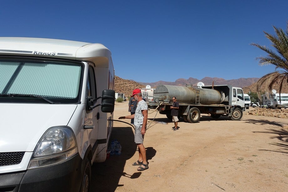 We hadden water nodig vandaag dus hebben we de waterwagen aangehouden en voor € 2,30 hadden we de tank weer vol.