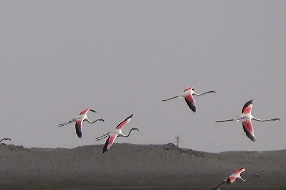 Om half elf zijn we op de fiets gestapt. Eerst naar Merzouga en daar moesten we een onverharde weg in. Soms splitste de weg zich en dan namen we het pad waar het meeste gereden wordt. Na drie kilometer stonden we voor het meer. Bijzonder hier in de droogte. We hebben net gelezen dat hier sommige jaren als het niet geregend heeft helemaal geen meer is en dus ook geen flamingo’s. Nu zagen we een paar grote groepen aan de overkant in het water.