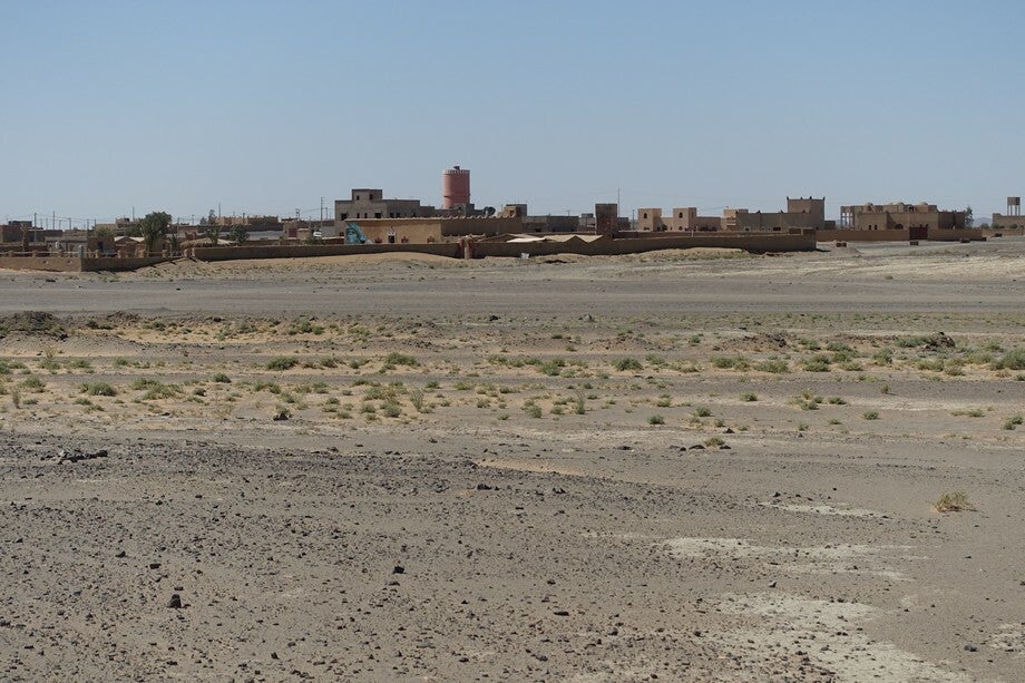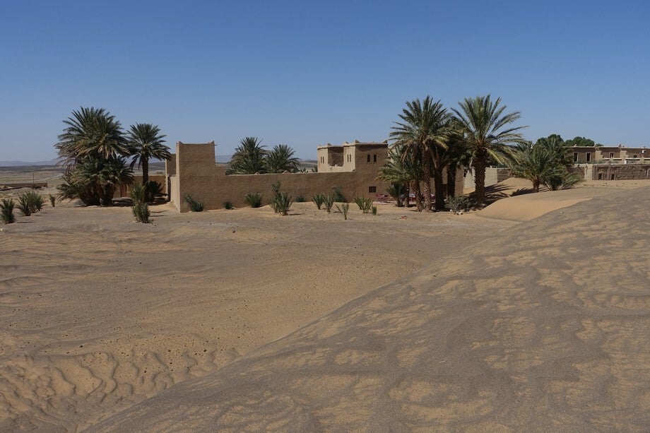 Eenzame rit vandaag door verlaten landschappen. Een paar stadjes gehad onderweg, Tazzarine, Alnif en Rissani en een paar hele kleine dorpjes. Ergens in de middle of nowhere stond een bord dat politiecontrole aangaf. Het was de heren te warm denk ik, ze zaten onder een boompje gezellig thee te drinken in plaats van op de weg te letten. Er was ook niet zoveel om op te letten.