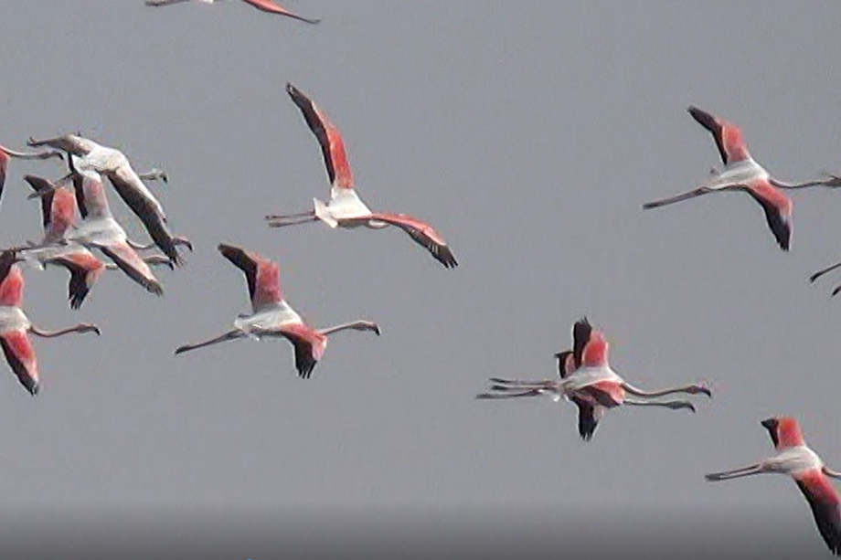 Als ze in het water staan zijn ze gewoon wit. Als ze aan komen vliegen en dalen kun je goed zien dat de onderkant van de vleugels zwart en oranje is. Dit is een heel mooi gezicht. Verderop zaten nog twee groepen en af en toe vlogen er wat heen en weer. We hebben vol bewondering naar dit kleurige schouwspel staan kijken. We hadden de tijd, broodje meegenomen, prachtig.