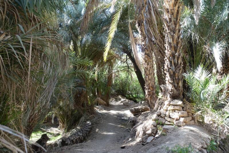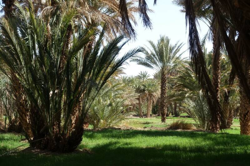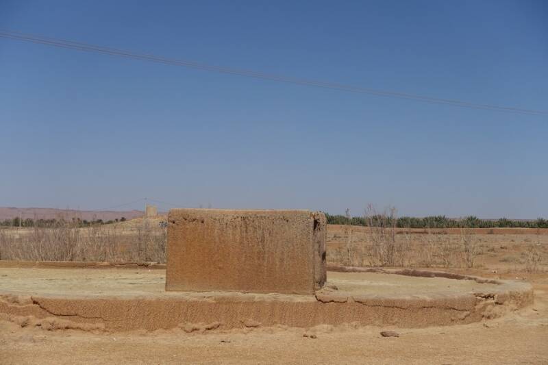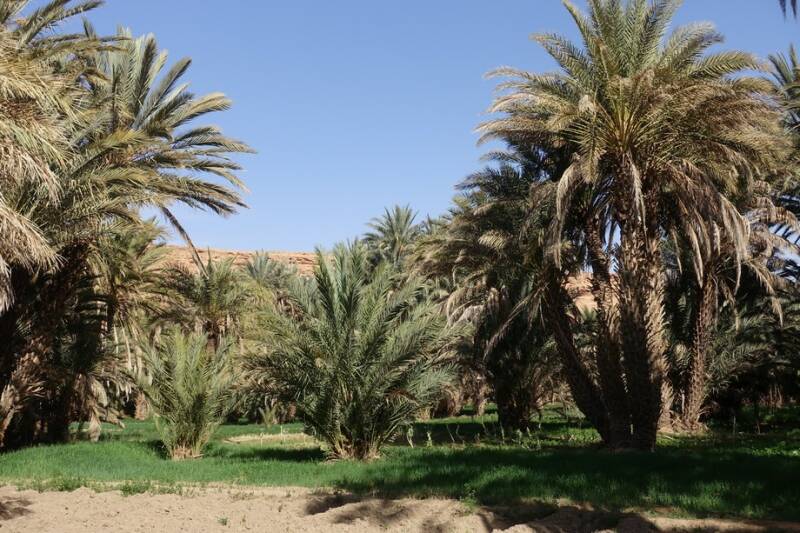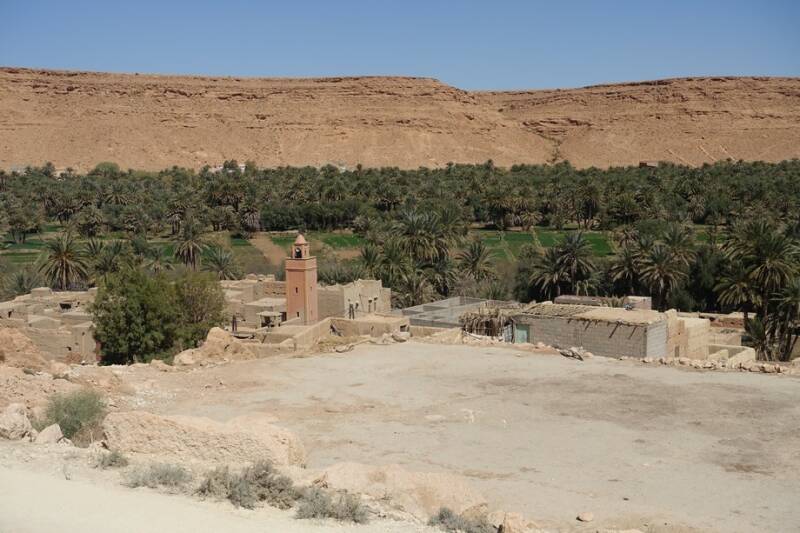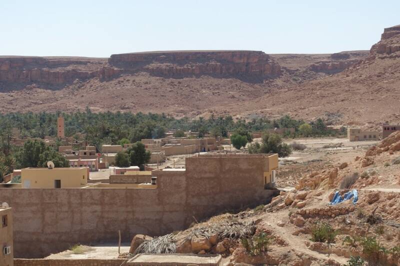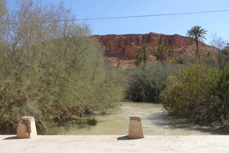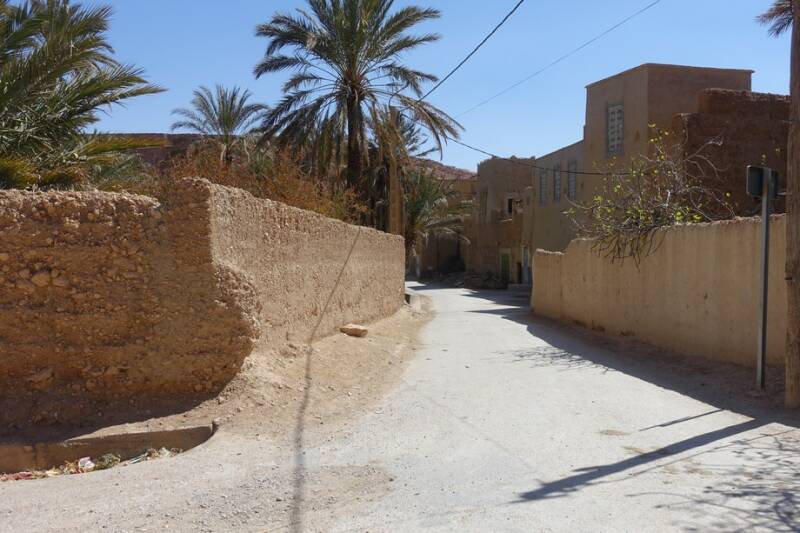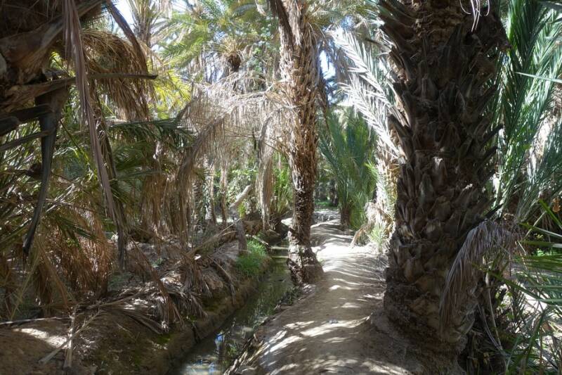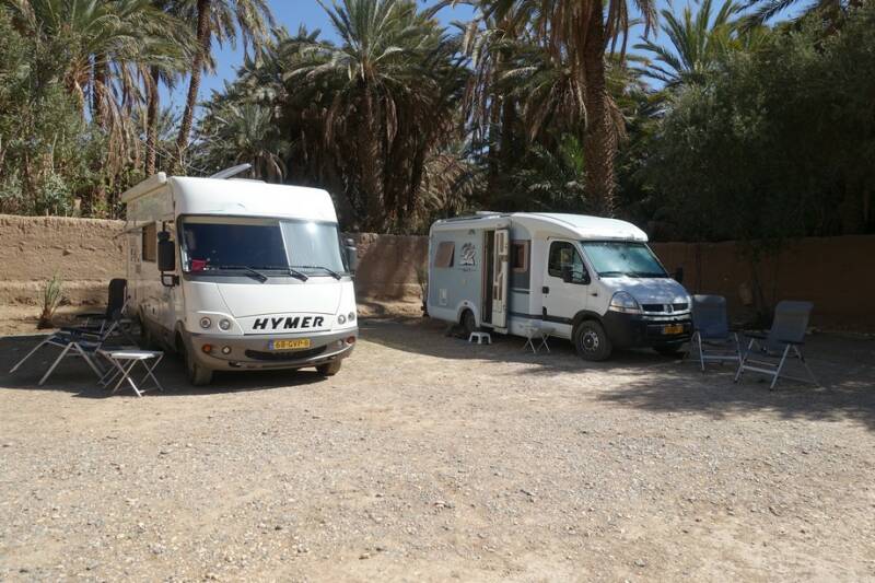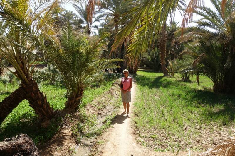 Nu staan we op camping Tissirt in de oase tussen twee hele kleine dorpjes. Je kunt hier mooi wandelen in de palmerie. Er is hier water genoeg. Er stroomt een irrigatiekanaal met zijtakken en dit wordt gevoed door een stuwmeer bij Er Rachidia, 30 km verderop.