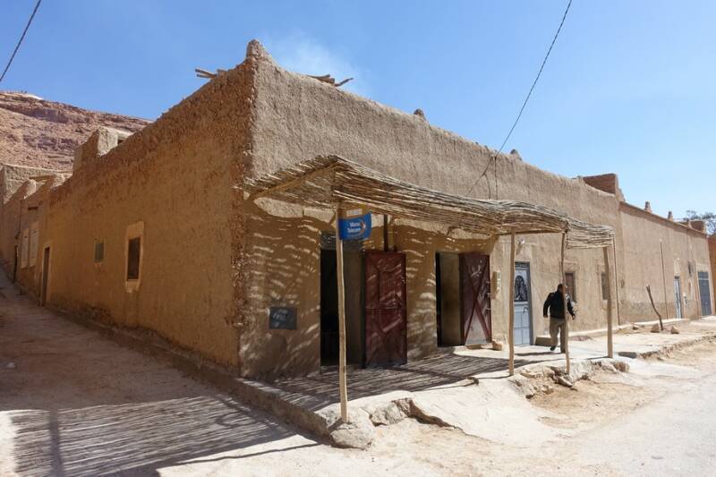 Het was fris vanmorgen met opstaan. Dit waren we niet meer gewend. Om een uur of tien konden we in het zonnetje koffie drinken. Een uurtje later gingen we op de fiets op verkenning. De camping af en dan links is na anderhalve kilometer een dorpje. Hier in het eerste winkeltje rechts met maroctelecom-bord zijn wat levensmiddelen te koop en ook traditioneel zelfgebakken Marokkaans brood. De winkelier vertelde heel trots dat zijn vrouw zelf het brood bakt dat hij verkoopt.