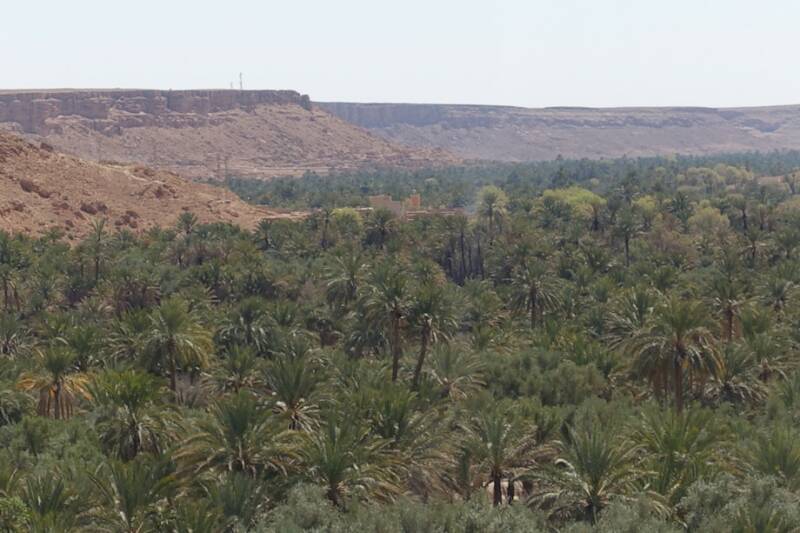 Weer 12 km verderop moesten we naar beneden de oase in. De grote oase in de Ziz-kloof waar we al een aantal keren bovenlangs zijn gereden. Hier wilden we nu een keer kijken.