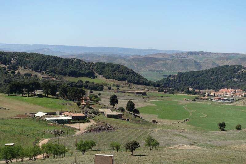 Hierna ging het via een pas met veel bomen omhoog tot bijna 2200 meter. Daarna een hele poos over een groene vlakte tussen 1800 en 1900 meter hoog. Hier zagen we de eerste huizen met een puntdak weer en ook de eerste kale bomen. Ongeveer 15 km voor Azrou ging het naar beneden door een cederbos tot 1400 meter.
