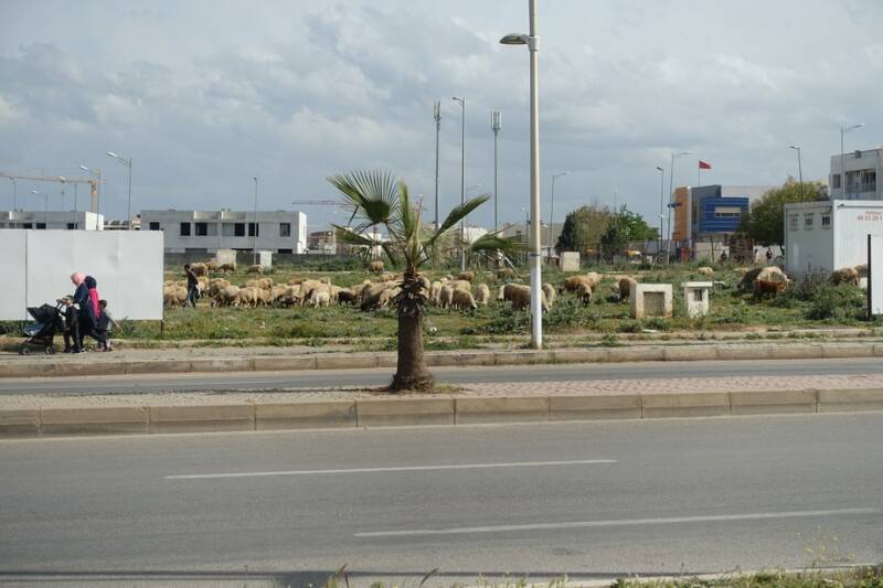 Bij de moskee liepen een paar schapen te grazen, het gras is daar vast heel lekker.