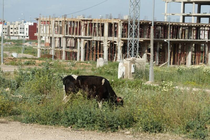 Langs deze weg is het verschil tussen arm en rijk duidelijk te zien. Er staan prachtige huizen met dure auto’s ervoor en aan de overkant loopt een herder met zijn kudde schapen. Bij een flat in aanbouw graasden een paar koeien aan een touw.